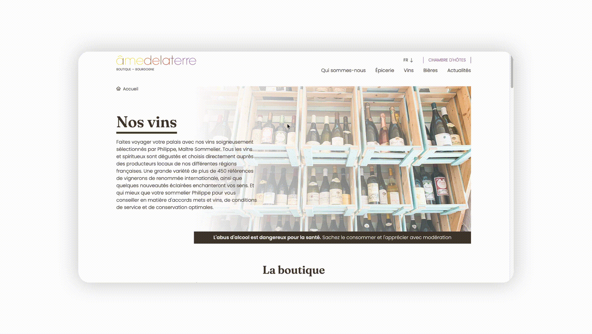 ☞ Faire du volet "Boutique" un véritable prolongement de l'expérience de séjour, en présentant les vins et spiritueux comme des trésors du patrimoine bourguignon.