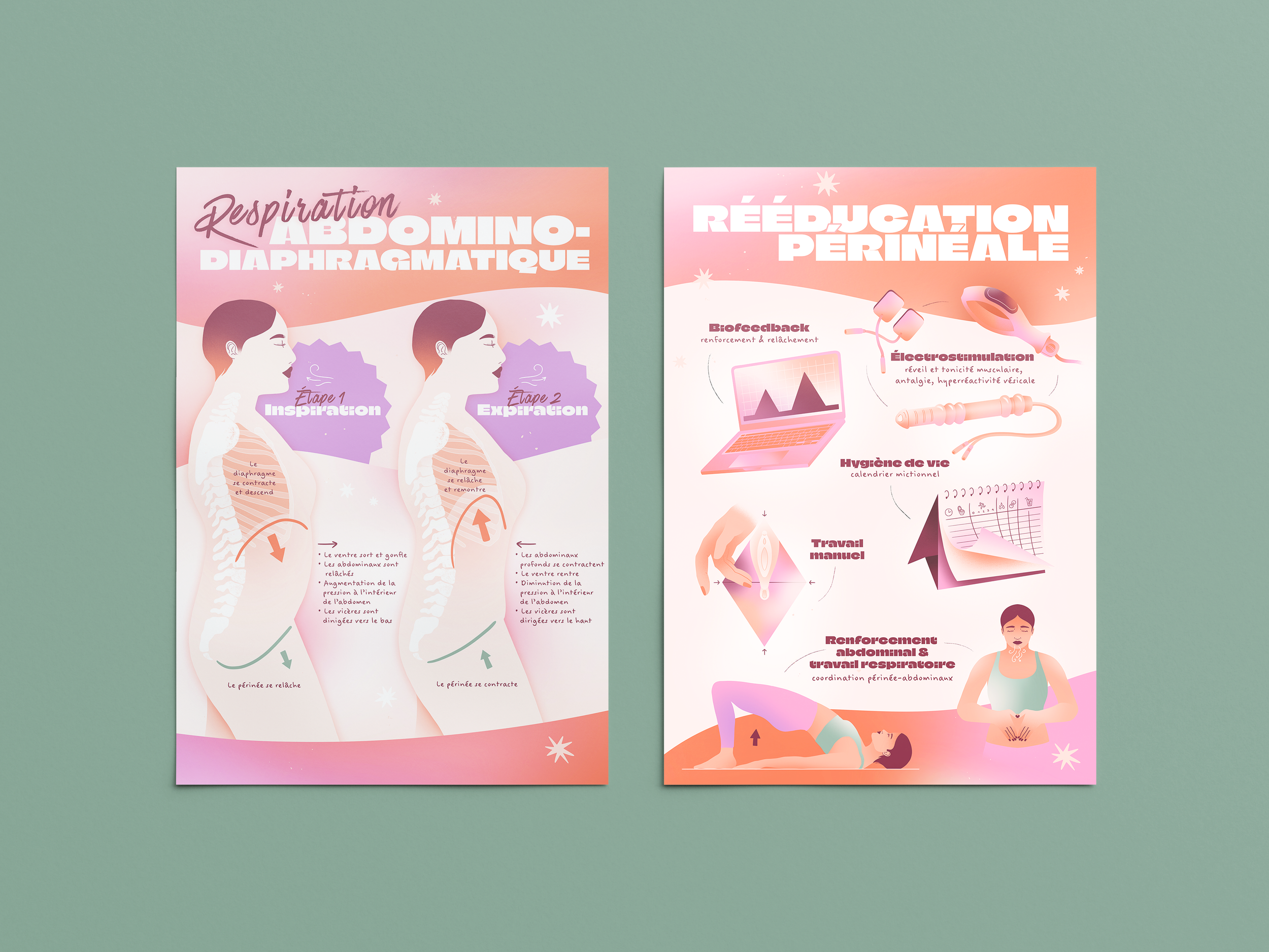 ☞ Création de 4 planches pédagogiques et anatomiques simplifiées pour rendre les mécanismes de la rééducation périnéale accessibles et moins intimidants.