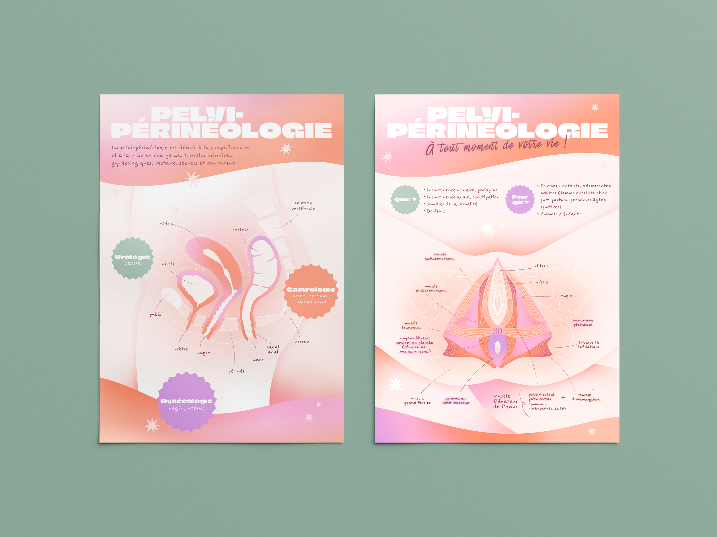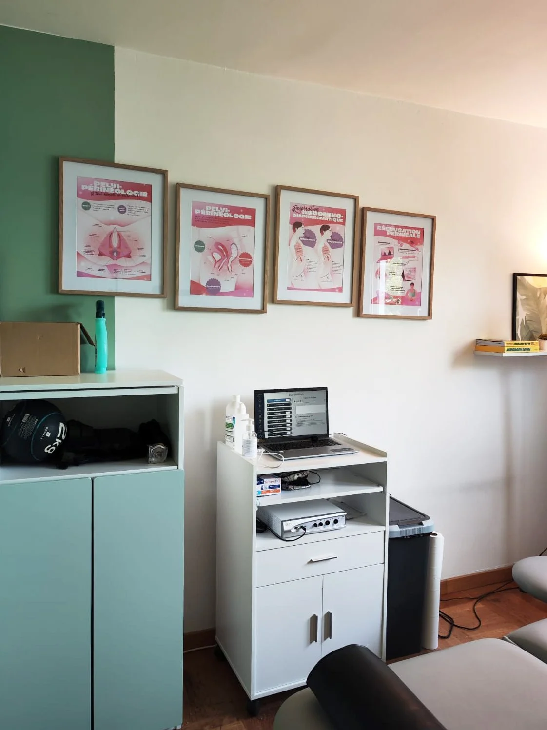 Cloé, kinésithérapeute et spécialisée dans la rééducation périnéale, souhaitait transformer son espace de soin en un lieu à la fois didactique et bienveillant. L'enjeu était de briser les tabous liés à la santé intime tout en offrant des supports visuels clairs pour accompagner les explications thérapeutiques pour les patientes.